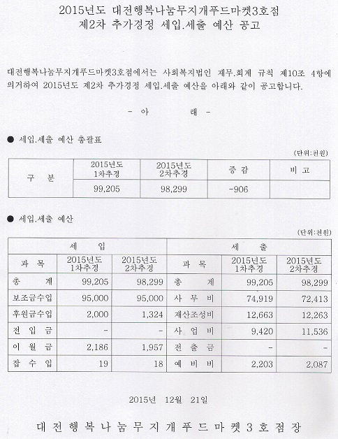 19-03-28 11:24 대전행복나눔무지개푸드마켓3호점 2015년도 제2차 추가경정 세입.세출 예산 공고 페이지 정보 작성자 성우보육원 댓글 0건 조회 5,072회 본문 대전행복나눔무지개푸드마켓3호점 2015년도 제2차 추가경정 세입.세출 예산 공고 목록 댓글목록 댓글목록 등록된 댓글이 없습니다.