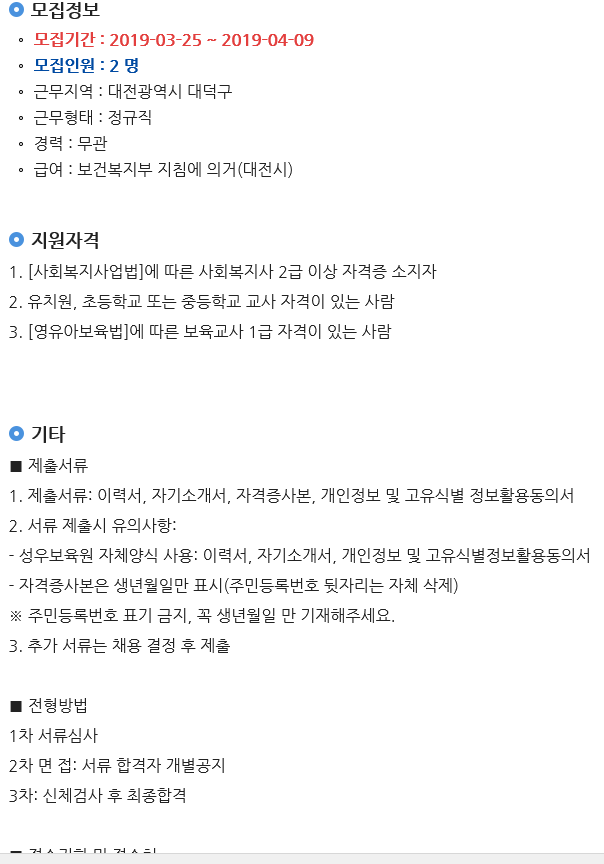 19-03-25 11:50 (공고) 생활지도원 모집 페이지 정보 작성자 성우보육원 댓글 0건 조회 6,198회 본문 생활지도원 모집 ※ 정확한 정보는 복지넷 공고 참고해주세요. 목록 댓글목록 댓글목록 등록된 댓글이 없습니다.
