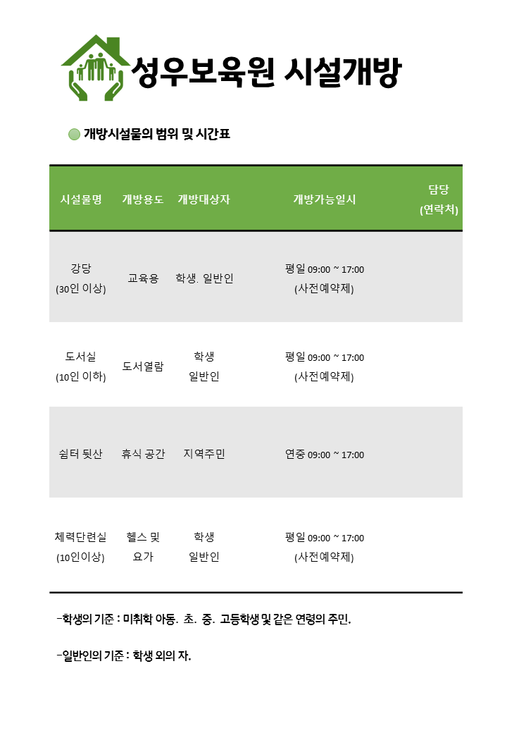 성우보육원 시설 개방과 관련 안내입니다. 자세한 안내는 첨부화일을 확인해주세요.