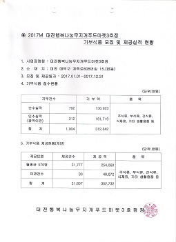 19-03-28 11:43 대전행복나눔무지개푸드마켓3호점 2017년 기부식품 모집 및 제공실적 공고 페이지 정보 작성자 성우보육원 댓글 0건 조회 5,244회 본문 대전행복나눔무지개푸드마켓3호점 2017년 기부식품 모집 및 제공실적 공고 목록 댓글목록 댓글목록 등록된 댓글이 없습니다.