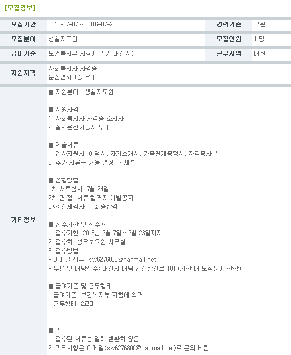 19-03-28 11:31 (채용공고)생활지도원 모집 페이지 정보 작성자 성우보육원 댓글 0건 조회 5,747회 본문 생활지도원 모집 목록 댓글목록 댓글목록 등록된 댓글이 없습니다.