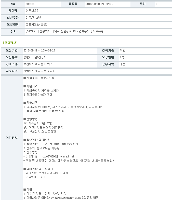 19-03-28 11:32 (채용공고)생활지도원 모집 페이지 정보 작성자 성우보육원 댓글 0건 조회 6,117회 본문 생활지도원 모집 목록 댓글목록 댓글목록 등록된 댓글이 없습니다.