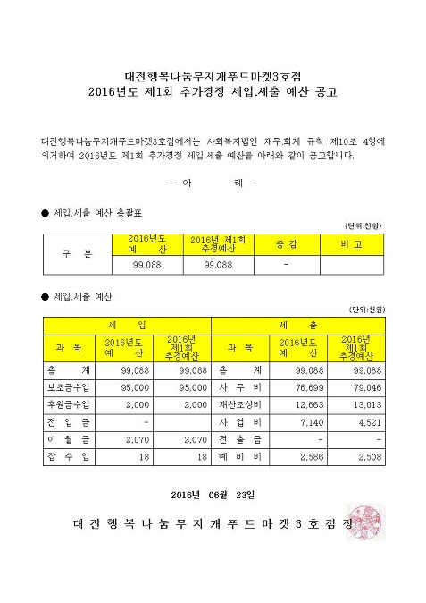 19-03-28 11:32 행복나눔무지개푸드마켓3호점 2016년도 제1회 추가경정 세입.세출 예산공고 페이지 정보 작성자 성우보육원 댓글 0건 조회 6,195회 본문 행복나눔무지개푸드마켓3호점 2016년도 제1회 추가경정 세입.세출 예산공고 목록 댓글목록 댓글목록 등록된 댓글이 없습니다.