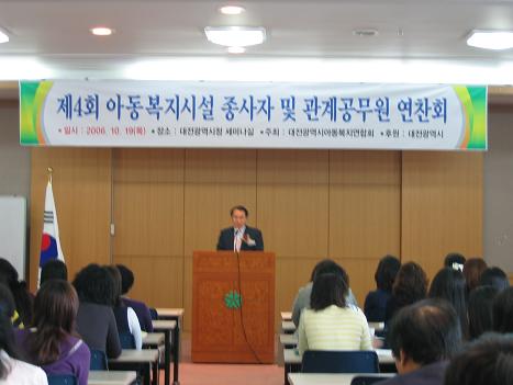 2006.10.20 10월 19일 아동 복지시설 종사자 및 관계 공무원 연찬회 페이지 정보 작성자 성우보육원 댓글 0건 조회 1,843회 본문 10월19일(목요일)아동 복지시설 종사자 및 관계 공무원 연찬회가 시청 세미나 실에서 있었습니다. 목록 댓글목록 댓글목록 등록된 댓글이 없습니다.