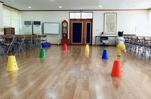 태권슐레 프로그램 진행하였습니다^^고깔을 이용하여 달리기도 해보고~엉금엉금 기어서 고깔 주변을 기어…