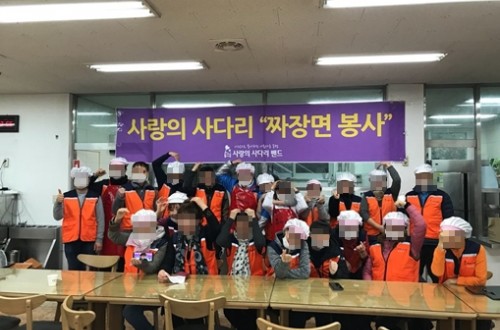 사랑의 사다리 밴드에서 오셔서 아동들을 위해 짜장면 봉사 해 주셨습니다!아동들이 좋아하는 메뉴선정부…