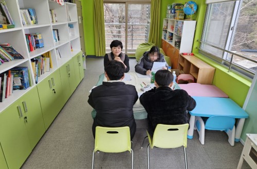대덕대학교 봉사팀 네 분 내방 하셔서 고등학생 아동들 대상으로 진로 설계 프로그램과 원내…