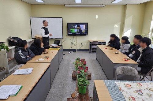 2024.01.13(토) 대덕대학교 봉사팀 네 분 내방하셔서 고등학생 아동들 대상으로 진…