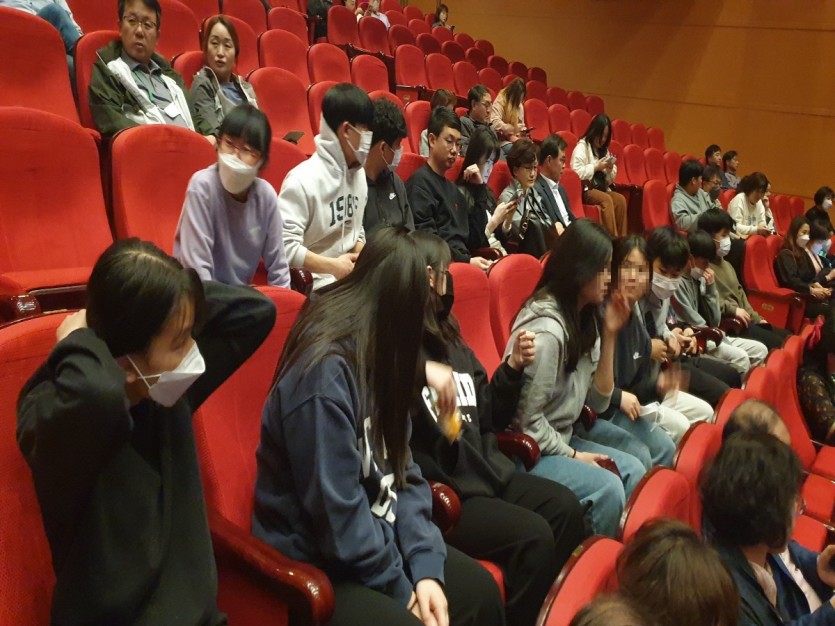 무대가 잘 보이는 자리에 앉아 관람하는 동안 아동들이 흥미를 갖고
