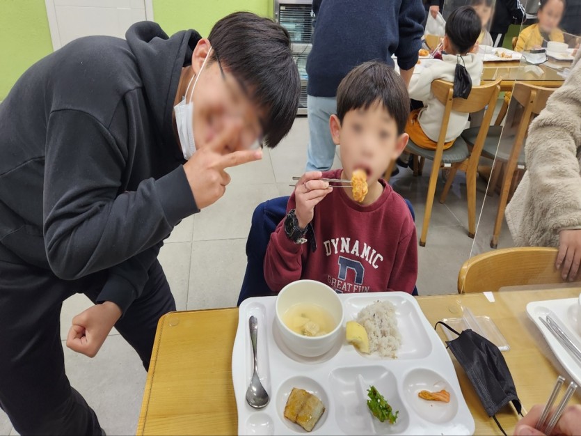 점심 식사로 먹었으며, 아동들이 서로 나누어 먹고 오순도순 이야기하면서 즐거운 식사 시간을 보낼 수 있었습니다.~^^