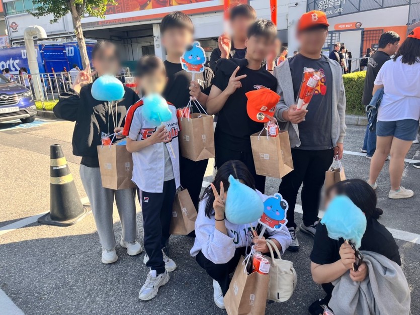 기분좋게 우리 대전팀 한화이글스가 대승을 거둬 우리 아동들은 승리의 요정이