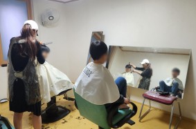 트윈스 미용실 마인자 원장님께서 내방하셔서 아동들을 위해 이미용 봉사 진행해주셨…