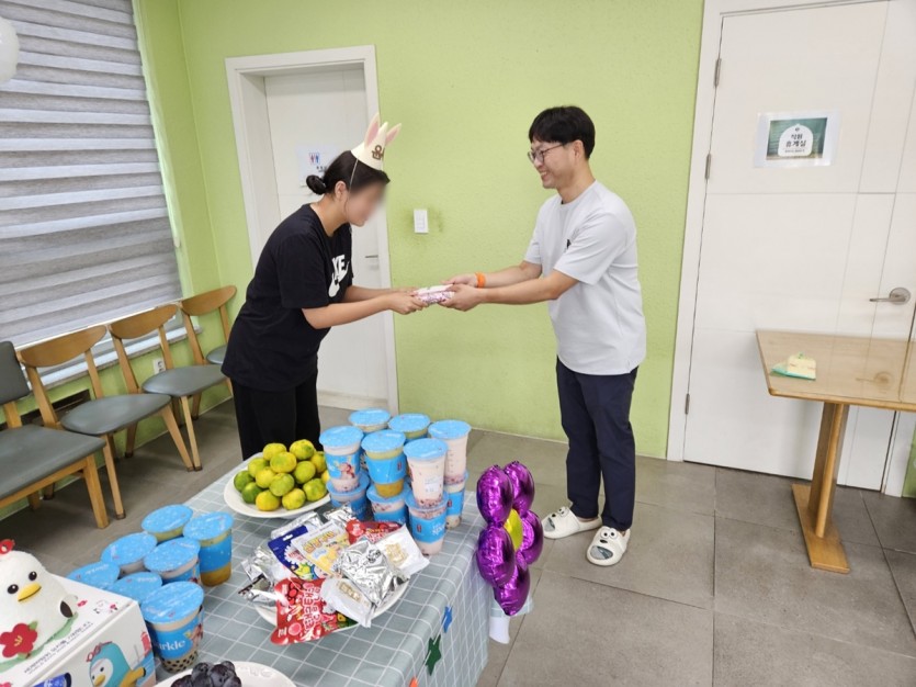 8월 생일을 맞이한 아동을 위해 생일 축하 파티가 있었습니다.