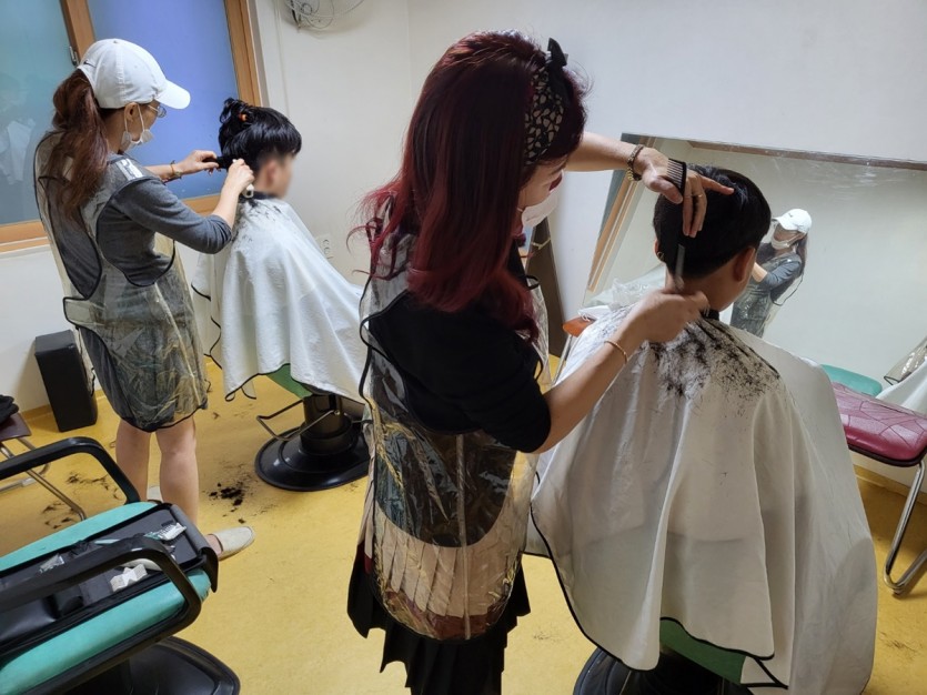 트윈스 미용실 마인자 원장님과 김민정 봉사자님께서 오셔서 이·미용 봉사 진행해주셨습니다~!!