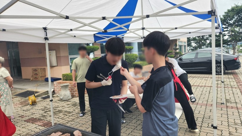 우리 성우 아동들을 위해 맛있는 숯불구이를 해 주셨습니다.