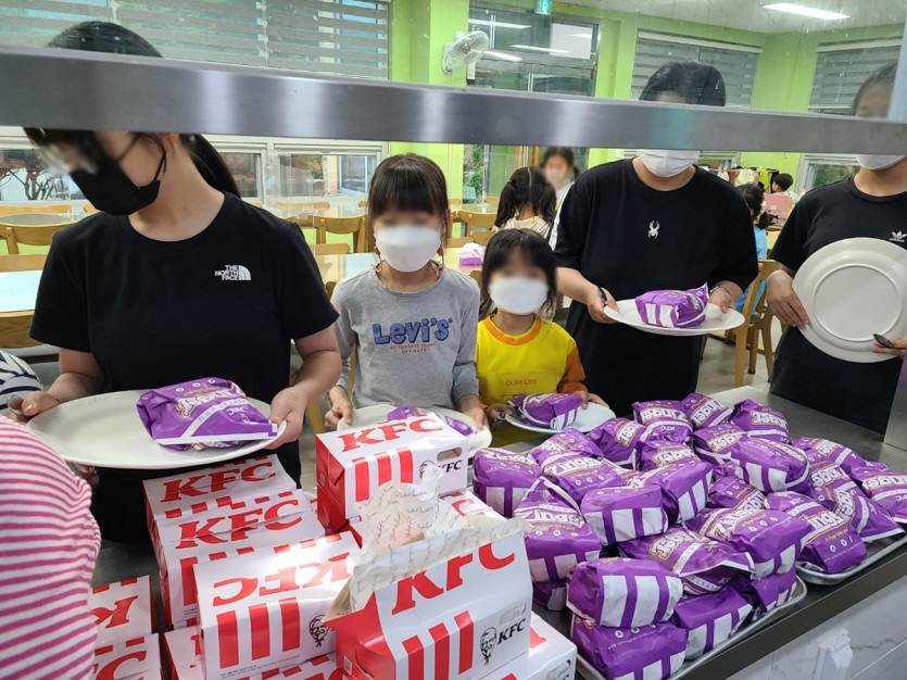가정의 달을 맞이하여 KFC에서 성우 아이들을 위하여 따뜻한 햄버거와 치킨을 후원해 주셨습니다~^^