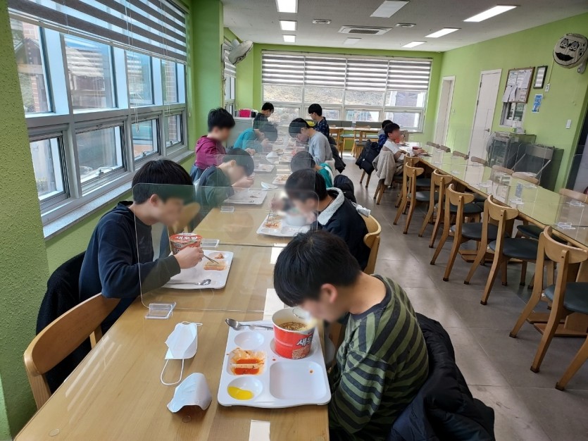 후원자님께 감사한 마음을 가지고 모두 남김없이 맛있게 먹는 모습 보였습니다.